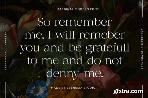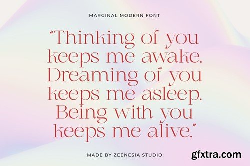 Introducing Marginal Marginal is a elegant display font with serif style. It's modern and classic font with a unique and deference look . Perfect if you need a dose of fun in your project. Perfect for editorial projects, Logo design, web font, clothing branding, product packaging, magazine headers, or simply as a stylish text overlay to any background image. What’s Included : We hope you enjoy the font, please feel free to comment if you have any thoughts or feedback. Thanks for purchasing and glad to help you!