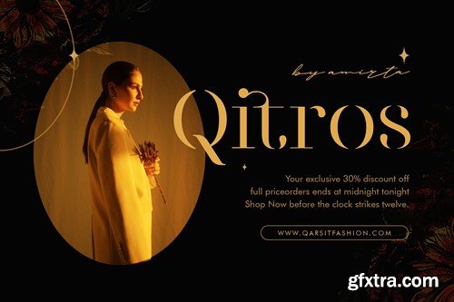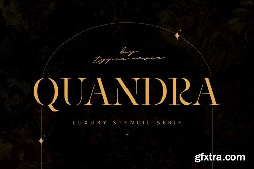 Quandra - Luxury Stencil Serif font - High end and Luxury Branding Quandra, a Luxury Stencil Serif font, is designed to bring an air of opulence to your creative projects. Its Elegant style makes it perfect for high-end branding. Quandra, with its Luxury Stencil Serif style, can be applied in a variety of design contexts, such as logo design for luxury brands, high-end products, or high-end services, Branding Collateral, Packaging Design for premium products, Website Titles, Printed Materials, Event Invitations, Fashion Industry, Interior Design, Restaurant Menus, Book Covers. Whether you're working on a luxury fashion campaign or a premium product label, Quandra can add a touch of sophistication to every application. What’s Included: Typia Nesia Std