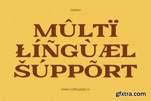 Introduction to Galeno – Expanded Serif The Galeno – Expanded Serif font stands out with its unique characteristics. Its design features wide shapes, making it noticeable and impactful. This font showcases wedged serifs, adding a bold and decisive touch. Galeno’s style suits various design needs, offering versatility and appeal. Design Features Galeno – Expanded Serif boasts a distinct wide shape. The wedges in its serifs create a strong presence. This design choice gives text a firm and assertive look. The font’s expansive style ensures readability, ideal for both digital and print formats. Usability and Versatility Galeno is perfect for various applications, from headlines to body text. Its clear and commanding style makes it great for professional and creative projects. The font is easily legible, making it a top choice for user interfaces and educational materials. Its versatility extends to marketing materials, enhancing brand identity. Conclusion In summary, Galeno – Expanded Serif is a robust and character-rich font. Its wide shape and wedged serifs create a bold statement. This font is suitable for diverse design purposes, fitting into professional and creative realms. Galeno is a go-to choice for designers seeking a font with presence and versatility. What you get : Galeno Regular Galeno Italic Features : Uppercase and lowercase characters Numerals and Punctuation (OpenType Standard) Accents (Supports Multilingual Characters) PUA Encoding You can use this typeface without needing any specialized software. If you have any inquiries or need assistance, please feel free to contact us. We appreciate your support in enhancing your creative projects! Best regards, Craft Supply Co.