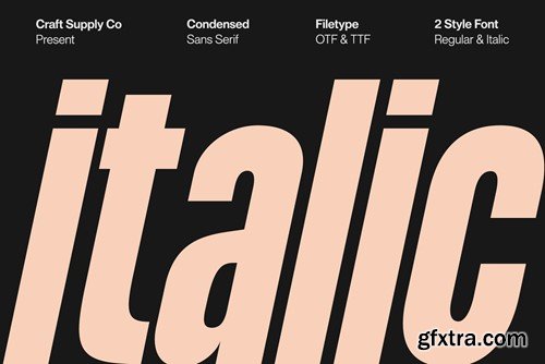 Godger Condensed Sans Serif: Boldness Redefined Step into the bold world of Godger, where strength and simplicity converge. This bold, masculine font is a powerhouse, built for strong, memorable branding. Its condensed form is not only space-efficient but also packs a punch, perfect for headlines that demand attention. Masculine and Commanding Godger’s bold, condensed letters exude a sense of command, making it a go-to for titles needing a masculine touch. Each letter is crafted for high impact, ensuring your words aren’t just read, but felt. This font doesn’t whisper; it shouts with a clear, authoritative voice. What you get : Godger Regular Godger Italic Features : Uppercase and lowercase characters Numerals and Punctuation (OpenType Standard) Accents (Supports Multilingual Characters) PUA Encoding You can use this typeface without needing any specialized software. If you have any inquiries or need assistance, please feel free to contact us. We appreciate your support in enhancing your creative projects! Best regards, Craft Supply Co.