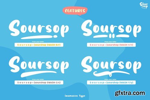 Soursop a cute handwritten font, Girly, fun and joyful character but strong and dynamic. Come with Swash for Complete your Typography. Exellent typeface to use for covering your Project, like Branding, Movie Title, Headline Letter, Bookcover or Book Content, Magazine cover, Poster, Quotes Lettering, Logos, and more your project design. inumocca type