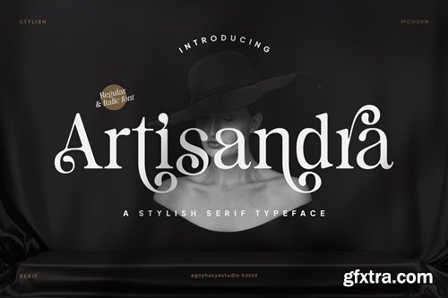 Proudly Present Artisandra - A Display Serif Typeface Artisandra Is a Decorative Stylish Serif Display Typeface That Is Elegant, Classic Yet Modern. It Comes in 2 (Two) Styles (Regular & Italic) and Is Created With Stylistic Alternatives and Ligatures. Combine It and Make Your Perfect Typography Design! Perfect for Your Design Projects Like Logos, Branding, Advertising, Product Designs, Stationery, Magazine Designs, Book/Cover Title Designs, Photography, Art Quotes, Wedding Designs, Fashion Designs, Special Events, Labels, Product Packaging, and More. Features File Includes Have Fun Creating & Designing With Artisandra agnyhasyastudio