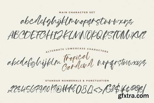 Tropical Garden is an organic handwritten font inspired by natural brush typography. Written with a relaxed movement using a slightly dry brush pen. This will give you a fresh and elegant design. Tropical Garden comes with a set of upper and lower case letters, numbers, alternative styles for some lower case characters are also available which makes your texts and designs more attractive.