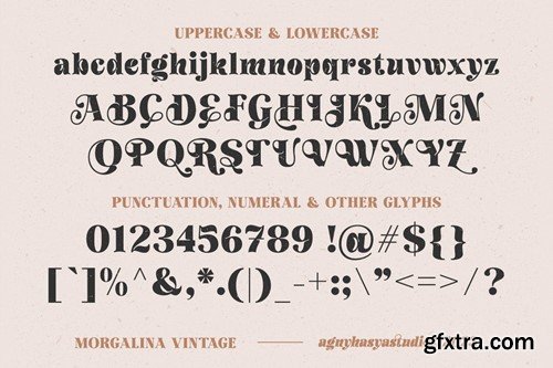 Morgalina Vintage Is a Serif Display Font With Retro Vintage Style Bold Typeface, Modern and Classic. It Comes in 2 (Two) Weights (Regular and Italic) Including Slants and Is Created With Stylistic Alternatives and Ligatures. Combine It and Make Your Perfect Typography Design! Perfect for Your Design Projects Like Logos, Branding, Advertising, Product Designs, Stationery, Magazine Designs, Book/Cover Title Designs, Photography, Art Quotes, Wedding Designs, Fashion Designs, Special Events, Labels, Product Packaging, and More. Features File Includes Have Fun Creating & Designing With Morgalina Vintage agnyhasyastudio