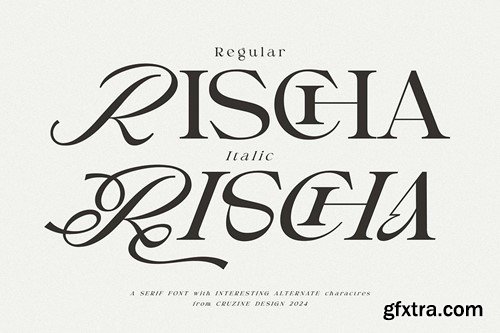 Trendy, elegant, luxury, retro & modern style serif font for your new fancy projects. Stylish, creative and classic style on Rischa font will be great for any modern or classy branding project. Lot of alternates and ligatures will help you to create unique and original logo design or website header! Enjoy :)