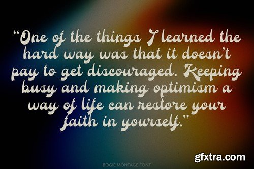 Bogie Montage is a groovy script come with 60's style. Groovy and refined you can explore and combine creating rhythm for comfortable reading. This font perfect for any projects, such logotype, stickers, greeting / wedding cards, packaging design, headlines, brand identity, t-shirt, posters, magazines, books, Instagram, websites, and many more. Feature Feel free to drop us a message any time and follow my shop for upcoming updates. Hope you enjoy it.
