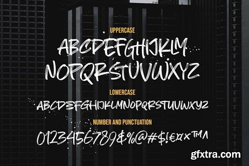 Explore the Monster Grande font – an assertive, hand-drawn typeface with an impressive texture. Combining urban style and a dry marker effect, this all-caps font imparts an energetic and trendy look. Monster Grande features a unique design suitable for various themes such as sport, urban, pop, underground, futuristic, or contemporary styles. Equipped with stylistic alternates and numerous ligatures, Monster Grande enhances your design, providing a realistic handwritten feel. Font features :