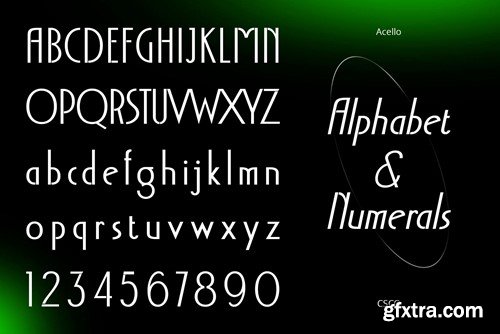 Acello – Geometric Sans Serif Font Modern Simplicity Acello, the Geometric Sans Serif font, effortlessly infuses modern simplicity into your display designs. Clean lines and a sleek aesthetic captivate your audience, ensuring a contemporary appeal. Readability Redefined Prioritizing clarity, Acello’s balanced proportions enhance readability. Each character is meticulously crafted for optimal legibility, ensuring your message is clear and accessible to all. Expressive Impact Acello – Geometric Sans Serif transcends mere communication; it resonates. Its bold presence and distinctive characters leave an indelible impression, making your content memorable and impactful. What you get : Acello Regular Acello Italic Features : Uppercase and lowercase characters Numerals and Punctuation (OpenType Standard) Accents (Supports Multilingual Characters) PUA Encoding You can use this typeface without needing any specialized software. If you have any inquiries or need assistance, please feel free to contact us. We appreciate your support in enhancing your creative projects! Best regards, Craft Supply Co.