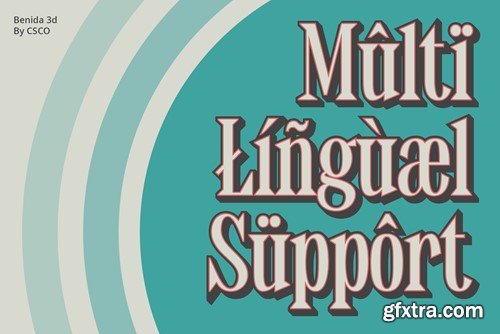 Benida 3D Font: Elevate Your Display with Dimensional Elegance Dynamic Display Presence Benida 3D commands attention with its basic serif shapes and condensed structure, creating a dynamic and impactful visual presence. Immerse in 3D Depth Experience a new dimension with Benida 3D. The font transcends flatness, incorporating a stunning 3D effect that adds depth and intrigue to every character, elevating your designs. In Summary Benida 3D isn’t just a font; it’s a design asset that transforms your display projects. With its condensed serif structure and mesmerizing 3D effect, this font is your gateway to dimensional elegance and visual impact. What you get : Benida Regular Benida Outline Benida Extrude Right Benida Extrude Left Features : Uppercase & Lowercase Numerals & Punctuations (OpenType Standard) Accents (Multilingual characters) PUA Encoded You can use this typeface without needing any specialized software. If you have any inquiries or need assistance, please feel free to contact us. We appreciate your support in enhancing your creative projects! Best regards, Craft Supply Co.