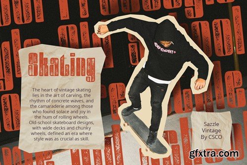 Sazzle Vintage: Making Statements with Bold Contrast and Vintage Vibes Introduction Step into a world where design meets distinction with Sazzle Vintage, a font that doesn’t just speak but roars. Crafted for those who crave attention, it boldly diverges from the ordinary, immersing your projects in a nostalgic embrace. The Bold Statement Sazzle Vintage makes an unapologetic entrance with its thick, high-contrast strokes. Every character demands attention, turning your design into an attention-grabbing spectacle. Nostalgic White Space In a departure from conventional typography, Sazzle Vintage embraces minimal white space. The result? A compact layout that captivates the viewer and redefines the norms of spacing. Embracing Vintage Vibes Transport your audience to an era of timeless charm. Sazzle Vintage effortlessly blends modern needs with vintage effects, adding a touch of retro sophistication to every character. Conclusion Sazzle Vintage isn’t just a font; it’s a visual journey. Its bold strokes, vintage allure, and adaptability make it a must-have for designers seeking a timeless, high-contrast display. Elevate your projects with Sazzle Vintage and let every design tell a story. What you get : Sazzle Regular Sazzle Drawn Sazzle Rough Sazzle Stamp Features : Uppercase and lowercase characters Numerals and Punctuation (OpenType Standard) Accents (Supports Multilingual Characters) PUA Encoded No specialized software is needed to utilize this typeface. For any inquiries or assistance, please don’t hesitate to get in touch. We appreciate your support in making your creative projects shine! Best regards, Craft Supply Co.
