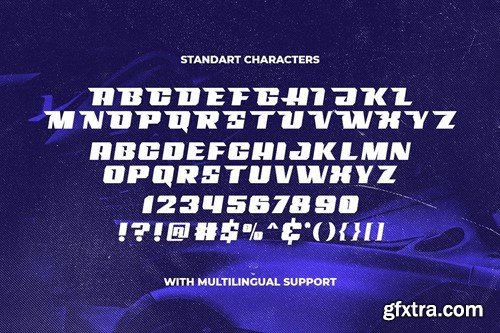 The Turbo Lancer font is tailored specifically for your sports and racing logos. Crafted to embody dynamic spirit and speed, this font offers three distinct styles: regular, outline, and extrude. With bold and sharp characters, it ensures your logo stands out and grabs attention. Turbo Lancer exudes a modern and aggressive vibe, perfect for brands or events revolving around racing and high-speed sports. What you get :