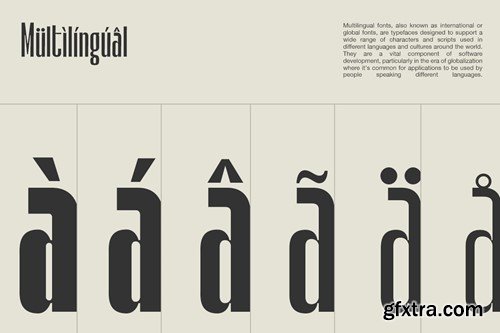 Introducing Kirgina! – An ultra-condensed sans serif with a style that is very different from the others Kirgina is a condensed sans-serif typeface created to be used for bold titles with distinctive shapes in a display font way to make it legible for contemporary use. Come with single-weight, legible, and expressive shapes. Its glyph catalog provides an easy-to-compose system for Latin languages with high x-height and tight line spacing. Kirgina comes in 6 font styles (Light, Regular, Medium, SemiBold, Bold, ExtraBold), Its weight is superior in posters, social media, headlines, magazine titles - and wherever you want to be seen. Inspired by the style of design that is currently popular, this is the answer to all the needs of every idea that you will pour into this modern era. What's Included? Language Support: Danish, English, Estonian, Filipino, Finnish, French, Friulian, Galician, German, Gusii, Indonesian, Irish, Italian, Luxembourgish, Norwegian Bokmål, Norwegian Nynorsk, Nyankole, Oromo, Portuguese, Romansh, Rombo, Spanish, Swedish, Swiss-German, Uzbek (Latin) Please let me know if you need any questions Have a great day! Dharmas Studio
