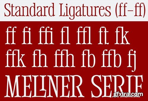 Meliner is a compact display serif font that has a distinctive and elegant serif shape that is perfect for creating sleek, impressive designs that give it a modern, stylish personality. Meliner comes with 40 ligatures and 46 alternative glyphs. Features: What's included: We highly recommend using a program that supports OpenType features and Glyphs panels like Adobe apps and Corel Draw, so you can see and access all Glyph variations. This type of family has become the work of true love, making it as easy and fun as possible. I really hope you enjoy it! if you have any questions or problems please contact email: [email protected] Thank you Enjoy the font and go get creative :)