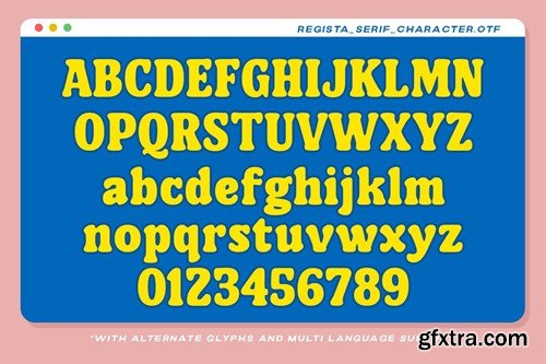 Introducing, Regista - A bold serif font. This font is one of our best product ever, carefully made to make sure its quality. This font perfectly made to be applied especially in logo, and the other various formal forms such as invitations, labels, logos, magazines, books, greeting / wedding cards, packaging, fashion, make up, stationery, novels, labels or any type of advertising purpose. Features : *Uppercase & lowercase *Numbers and punctuation *Alternates & Ligatures *Multilingual *PUA encoded We highly recommend using a program that supports OpenType features and Glyphs panels like many of Adobe apps and Corel Draw, so you can see and access all Glyph variations.