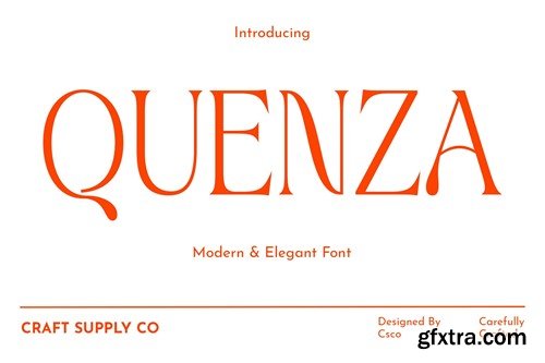 Quenza Font – Seamless Integration in Modern Design Quenza, with its modern serif allure, seamlessly integrates into contemporary design landscapes. Its clean lines and balanced proportions make it an ideal choice for websites, branding materials, and digital platforms where elegance meets the demands of the modern aesthetic. Effortless Elegance in Every Glyph Every glyph in Quenza is meticulously crafted to exude effortless elegance. The font’s nuanced details and precise strokes ensure that each character contributes to an overall aesthetic that is both contemporary and timeless. A Modern Serif Masterpiece Quenza stands as a masterpiece in modern serif typography. It encapsulates the essence of modernity while preserving the timeless charm of serif fonts. This balance makes Quenza an invaluable asset for designers seeking to make a lasting impression. Conclusion Quenza – not just a font, but an embodiment of modern sophistication. Elevate your designs, captivate your audience, and make a lasting impression with the timeless elegance of Quenza. What you get : Quenza Regular Quenza Italic Features : Uppercase and lowercase characters Numerals and Punctuation (OpenType Standard) Accents (Supports Multilingual Characters) PUA Encoding You can use this typeface without needing any specialized software. If you have any inquiries or need assistance, please feel free to contact us. We appreciate your support in enhancing your creative projects! Best regards, Craft Supply Co.