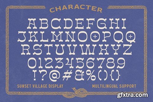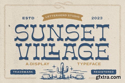 Introducing, Sunset Village! A Classic Wild West style font, ready to rock! Suitable for design needs with a touch of classic western and also suitable to be applied especially in logo, and the other various formal forms such as invitations, labels, logos, magazines, books, greeting / wedding cards, packaging, fashion, make up, stationery, novels, labels or any type of advertising purpose. Features : *Uppercase & lowercase *Numbers and punctuation *Multilingual *PUA encoded We highly recommend using a program that supports OpenType features and Glyphs panels like many of Adobe apps and Corel Draw, so you can see and access all Glyph variations.