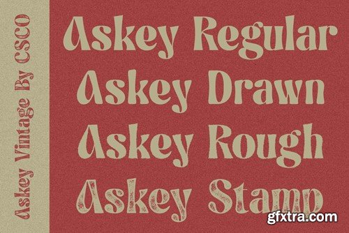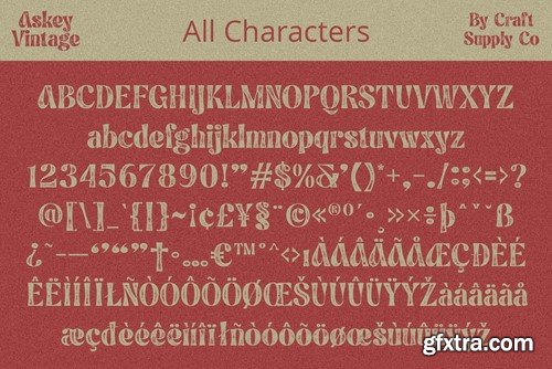 Askey Vintage: Embracing Funky Retro Vibes A Funky Twist on Display Typography Askey Vintage presents a display font with a funky twist, featuring playful shapes and a vintage stamp rough effect that adds character to any design. Retro Charm with Stamp Rough Effect Inspired by vintage aesthetics, This font exudes retro charm with its unique stamp rough effect. Each letter carries a nostalgic feel, reminiscent of old-school signage and posters. Perfect for Bold Statements Tailored for making bold statements, This font stands out in various design contexts. Whether it’s for posters, album covers, or branding materials, this font adds a touch of personality and flair. Versatile and Eye-Catching Beyond its funky appearance, This font offers versatility and eye-catching appeal. Its distinct style makes it suitable for a wide range of projects, from advertising campaigns to social media graphics. Retro Creativity This font invites you to unleash your retro creativity with its funky shapes and vintage stamp rough effect. Perfect for making bold statements and adding personality to your designs, this font is a must-have for any designer seeking a touch of nostalgia and vibrancy. What you get : Features : For any inquiries or assistance, please don’t hesitate to get in touch. We appreciate your support in making your creative projects shine! Best regards, Craft Supply Co.