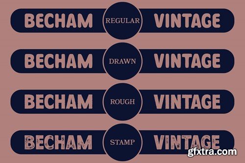 Becham Vintage: Bold and Vintage Display Typeface Bold Sans Serif Design Becham Vintage features a striking sans serif design, exuding boldness and authority in every character. Its robust appearance commands attention and makes a strong statement in any display setting. Rough Stamp Drawn Effect With its rough stamp drawn effect, This font exudes a vintage charm reminiscent of old printing techniques. Each letter carries an authentic, handcrafted appeal, adding character and uniqueness to your designs. Vintage Vibes, Modern Appeal While This font channels vintage vibes with its rough stamp drawn effect, it maintains a modern appeal suitable for contemporary design projects. It effortlessly blends the old with the new, offering versatility in application. Perfect for Vintage-Themed Projects Ideal for vintage-themed projects, This font lends a nostalgic touch to branding, packaging, posters, and more. Its bold sans serif style and rough stamp drawn effect bring an authentic vintage aesthetic to any design. Bold, Vintage, and Versatile This font stands out as a bold and versatile display typeface with a vintage twist. Its bold sans serif design and rough stamp drawn effect make it a perfect choice for designers seeking to infuse their projects with retro charm and modern appeal. Explore the timeless elegance of Becham Vintage and elevate your designs today. What you get : Features : For any inquiries or assistance, please don’t hesitate to get in touch. We appreciate your support in making your creative projects shine! Best regards, Craft Supply Co.