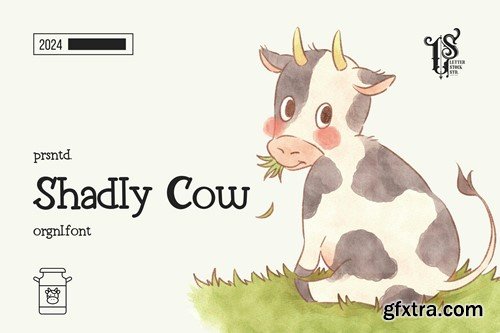 Introducing "Shadly Cow" – an original hand-drawn font with retro slab decorative vibes. This font brings a touch of nostalgia and charm to your designs, perfect for posters, logos, signage, and more. With its unique style and versatility, "Shadly Cow" is sure to stand out and make a statement. The package includes TTF, OTF, and WOFF files for easy installation and compatibility across various platforms. Elevate your designs with the timeless appeal of "Shadly Cow" today! Key Features: Original hand-drawn design Retro slab decorative vibes Perfect for posters, logos, signage, and more TTF, OTF, and WOFF files included for easy installation Bring a touch of retro charm to your projects with "Shadly Cow" now!