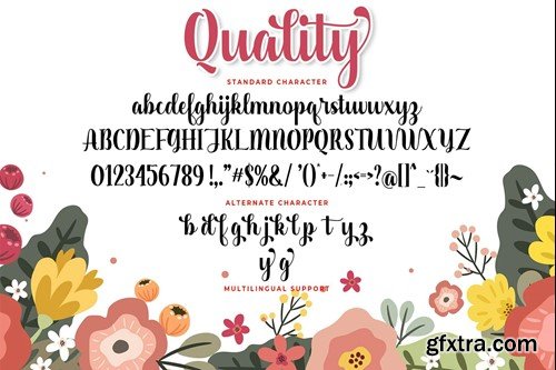 Quality is a gorgeous and playful script font crafted to add tons of stylish character to your designs. This font is PUA encoded, which means you can access all of the glyphs and swashes with ease! It can be used for logos, branding, invitations, stationery, wedding designs, social media posts, and much more! File Includes : OTF and TTF format.
