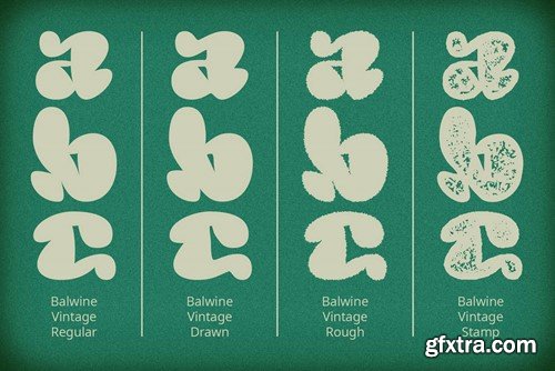 Balwine Vintage: A Whimsical Journey Through Clouds Balloon-Inspired Design Balwine Vintage boasts a playful balloon-inspired design, drawing inspiration from bubbles and clouds. Its rounded shapes and buoyant demeanor evoke a sense of whimsy and lightness. Rough Stamp Drawn Effect With a rough stamp drawn effect, the font exudes a vintage charm reminiscent of handcrafted designs from yesteryears. Each letter carries a weathered appearance, adding character and nostalgia. Vintage Whimsy This font captures the essence of vintage whimsy with its balloon-inspired form and rough stamp drawn effect. It transports viewers to a bygone era of childhood innocence and carefree wonder. Versatile Usage Despite its vintage aesthetic, This font is versatile in its application. Whether adorning children’s book covers, party invitations, or retro-themed posters, it adds a touch of whimsical nostalgia to any project. Whimsy Takes Flight This font invites you on a whimsical journey through clouds and bubbles with its playful balloon-inspired design and vintage rough stamp drawn effect. Let your creativity soar with Balwine Vintage and infuse your designs with nostalgic charm and light-hearted delight. What you get : Features : For any inquiries or assistance, please don’t hesitate to get in touch. We appreciate your support in making your creative projects shine! Best regards, Craft Supply Co.