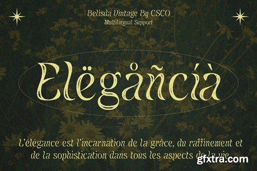 Belisda Vintage: Embodying Art Nouveau Elegance Flowing Leaf-Inspired Design Belisda Vintage boasts a flowing, leaf-inspired design that exudes elegance and sophistication. Its graceful curves and organic shapes draw inspiration from nature, adding a touch of beauty to any project. Art Nouveau Influence Crafted in the style of Art Nouveau, This font pays homage to the iconic artistic movement known for its intricate details and ornate designs. The font captures the essence of Art Nouveau with its elaborate flourishes and decorative elements. Vintage Charm with Rough Stamp Drawn Effect The font is enhanced with a rough stamp drawn effect, lending it a vintage appearance reminiscent of old-world craftsmanship. This effect adds character and depth to each letter, evoking a sense of nostalgia and authenticity. Versatile Application Despite its vintage-inspired design, This font is versatile and adaptable to various design projects. From branding and packaging to posters and invitations, it adds a touch of timeless elegance and sophistication. Timeless Tribute to Art Nouveau This font is a stunning display font that beautifully captures the essence of Art Nouveau. With its flowing leaf-inspired design, Art Nouveau influence, and vintage charm enhanced by a rough stamp drawn effect, it brings a touch of elegance and sophistication to any design project. Explore the beauty of Belisda Vintage and add a timeless flair to your creations. What you get : Features : For any inquiries or assistance, please don’t hesitate to get in touch. We appreciate your support in making your creative projects shine! Best regards, Craft Supply Co.