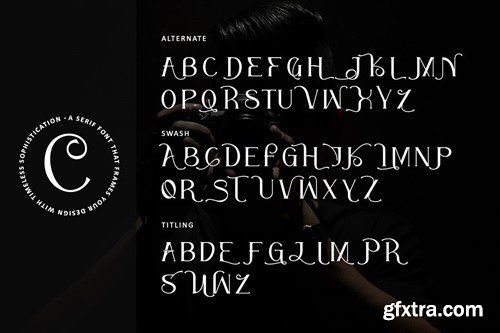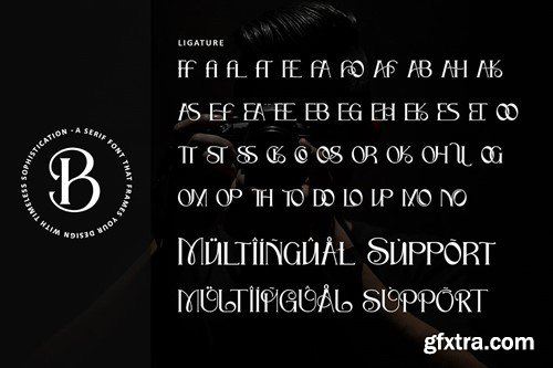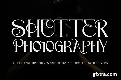 Dive into the elegance of Shutter Photography, a serif font that blends bold sophistication with unique character forms. Perfect for enhancing various design projects, from elegant product packaging to refined branding, this font's PUA encoding ensures easy access to a wide range of distinctive glyphs and swashes, promising exceptional results for your creative endeavors.