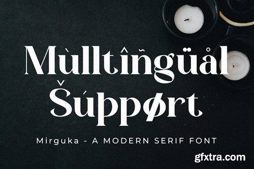 Mirguka - A Modern Serif Font, from Jeritype Studio, is a premium A Modern Serif Font, perfect for any project that requires a distinctive, premium feel. ============================================================ What's Included: Works on PC & Mac Simple installations Accessible in the Adobe Illustrator, Adobe Photoshop, Adobe InDesign, even work on Microsoft Word. PUA Encoded Characters – Fully accessible without additional design software. Fonts include support for 65 languages ; Afrikaans, Albanian, Asu, Basque, Bemba, Bena, Breton, Catalan, Chiga, Cornish, Danish, Dutch, English, Faroese, Filipino, French, Friulian, Galician, German, Gusii, Indonesian, Irish, Italian, Kabuverdianu, Kalenjin, Kinyarwanda, Luo, Luxembourgish, Luyia, Machame, Makhuwa-Meetto, Makonde, Malagasy, Manx, Morisyen, North Ndebele, Norwegian Bokmål, Norwegian Nynorsk, Nyankole, Oromo, Portuguese, Quechua, Romansh, Rombo, Rundi, Rwa, Samburu, Sango, Sangu, Scottish Gaelic, Sena, Shambala, Shona, Soga, Somali, Spanish, Swahili, Swedish, Swiss, German, Taita, Teso, Uzbek (Latin), Volapük, Vunjo, Zulu, ============================================================ Best Regard Jeritype Studio