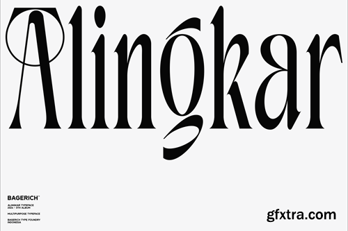 Alingkar is high contrast serif font features a mixed modern-classic design. Alingkar support multilingual languages, numbers, punctuation and alternative-ligatures. Create unique & beautiful logotype, use it as an elegant solution for your next magazine layout, or choose Alingkar for any graphics that require a sleek look with a elegant flair. Features : -FONT (OTF/TTF) Uppercase & lowercase Numeral & Punctuation Ligature & Alternate Multilingual Support