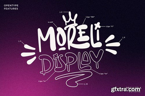 Moreli Display is a wonderful typeface designed to bring a spirit of psychedelia to your projects. With mixable uppercase and lowercase versions, ligatures, alternates, and outlines version, offers unmatched versatility for psychedelic theme design projects, branding, promotional materials, stickers, quotes, and social media posts. Let your creativity flow and embark on a captivating and transformative visual journey. Features Type j_1 until j_20 to features swash, ligatures will automatically replace the standard letter pairs whenever available, when using any OpenType capable software. Download Files (.zip) Thank you a million times for downloading and using this font for your projects. Enjoy this font and happy creating!