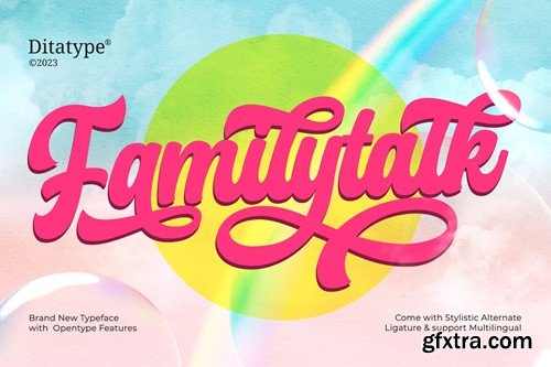 Familytalk is a script font that exudes confidence and elegance in every character. With its thick and sturdy strokes, this font commands attention and presence in any design. The swinging endings on certain letters provide a delightful sense of rhythm and flow to the text, giving your words a dynamic and expressive character. These unique design elements create a sense of movement within the text, making it visually captivating and engaging. Despite its thick weight, Familytalk maintains excellent legibility, making it suitable for a wide range of creative applications. Its ability to strike a balance between boldness and grace makes it a versatile choice for projects that demand a strong and stylish script font. In addition, enjoy the features here. Features: Familytalk fits in headlines, logos, posters, flyers, branding materials, print media, editorial layouts, and many more vintage-inspired designs. Find out more ways to use this font by taking a look at the font preview. Thanks for purchasing our fonts. Hopefully, you have a great time using our font. Feel free to contact us anytime for further information or when you have trouble with the font. Thanks a lot and happy designing.