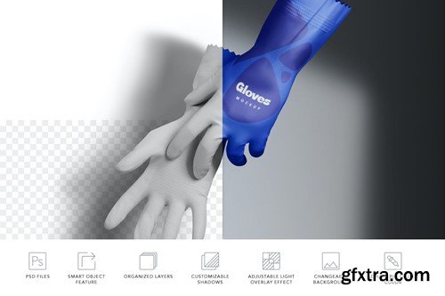 Now designers can save their precious time and effort by using these silicone gloves mockups to present designs. These mockups come with smart object options that enable you to add your design with a few clicks. You can also adjust the color, light effects, shadows and background of these mockups using well-named layers.