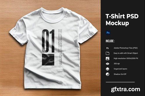 T-Shirt PSD Mockup Here's what's included : 1 Adobe Photoshop Files (PSD) Easy to edit with Smart Object High resolution 3000x2000 px / 300 dpi Organized layers How to Use : Open PSD File on Adobe Photoshop Application Double click smart layer, then the smart layer tab will open Paste your design on the smart layer Save and close smart layer tab's Now you get the preview of your design on the mockup