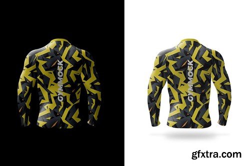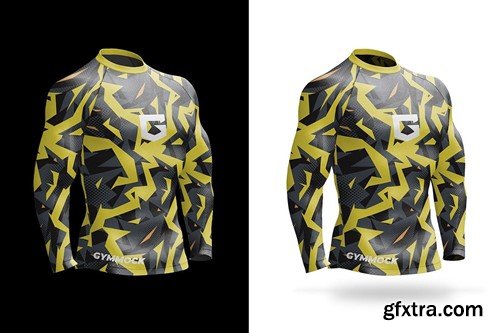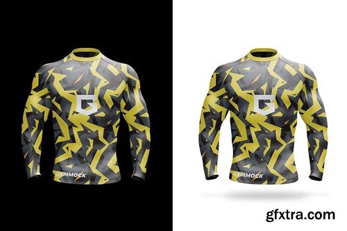 A realistic long-sleeved men compression shirt mockup with an option to change the colors of sleeves and collar to give it a unique look. The mockup includes the front, dynamic view, back and three-quarter view of the shirt. Use this compression shirt mockup to present your sports related designs in a unique and realistic fashion. All of the editing process is straightforward through smart objects and all of the layers are well organized for your convenience. The high-quality textures allow you to zoom in and take close-up images of your design. Mockup Overview: