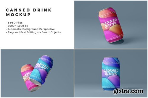 Canned Drink Mockup Template 3 sets of Canned Drink Mockup, very easy to use using smart objects, all color parts are editable and objects are separate from the background. Feature Photoshop CC Compatible Friendly User Guide PDF Automatic background perspective Well Organized Layers and Folders Easy and Fast editing via Smart Object 4000(h) x 6000(w) Pixel Resolution in 4K 300 dpi quality Fully Separated between Object, Shadow & Background Custom Object, Background & and Texture Color Included Noted : Image in This Preview are not Included