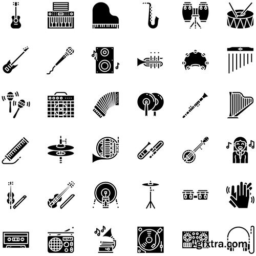 Introducing the captivating "Music Icon Set," a collection of meticulously crafted icons that encapsulate the essence of music across genres and eras. This versatile set is a treasure trove for designers, developers, and music enthusiasts alike, offering a multitude of applications across various platforms. With each icon carefully designed to represent different musical instruments, genres, and elements, this comprehensive collection allows you to effortlessly convey the spirit of music in your creative projects. All of the icons are fully editable, so you can easily customize them to fit your specific needs. And with a variety of file formats included, such as PNG, SVG, and AI, you'll be able to use these icons in any design software. Don't miss out on this collection. Add them to your design toolkit today and take your projects to the next level. Music Icon Set includes files: Quantity: 36 Icons x 4 Styles