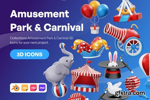 15 ready-made Amusement Park And Carnival 3D Icon file objects for Websites, Mobile Apps, and more. Enhance your designs with 3D Assets.