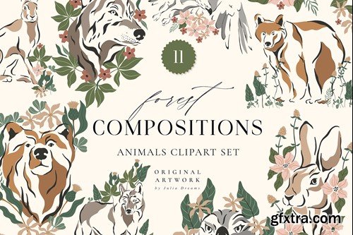 Forest Animals Compositions / Digital Clipart WHAT’S INCLUDED: • 11 compositions; • raster: .png with transparent background • vector: .ai, .eps and .svg; • high quality 300 DPI;