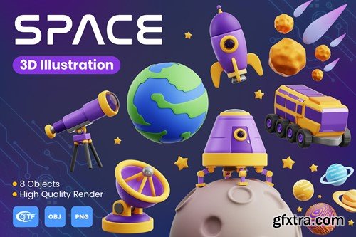 Space 3D Illustrations These 3D illustrations can be used for design needs, animation, web design, UI design, presentation slides, posters, and others Highlight Files Included Please contact me if you have any questions. Enjoy!