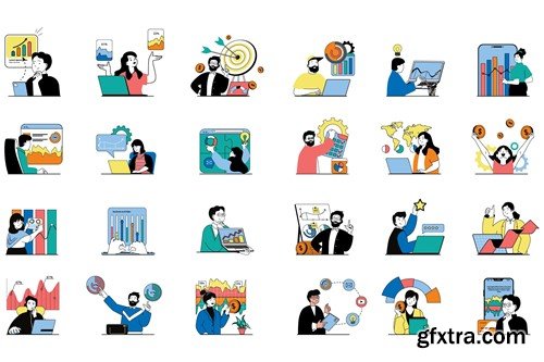 Digital business concept with character situations mega set. Collection of scenes people brainstorming, making development plan and targeting, investing money. Vector illustrations in flat web design. ZIP files Includes: