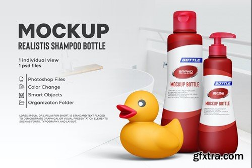 Shampoo Bottle Mockup This Mockups suitable to present your app/ui ux/template/logo designs professionally in a realistic display. It contains everything you need to create a realistic look of your project. Available in PSD Photoshop format with smart-object features, and within seconds you can replace the current design with your own. Features: . High quality . Fully editable mockup . Changeable background-color . Light Setting . Easy to use with Smart-Objects . Organized Layers . Help file included (pdf) . 3000 x 2000 px . 300 DPI Note: Image used in the preview is not included, just for preview purpose only.