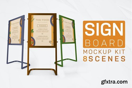 Sign Board Kit Mockup is a mockup that can present the Sign Board in different angles that you can use for your design, suitable for brands, and consists of separate layer sets. A help file is included. Featured: • 8PSDs • High resolution: 4000×4000 px • Easy to use with Smart Objects • Photorealistic Results • The design on the cover is for presentation purposes and not included in the file.