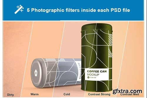 Coffee Can Mockup is a mockup that can present the coffee can in different angles that you can use for your design, suitable for brands, and consists of separate layer sets. A help file is included. Featured: • 5PSDs • High resolution: 4500×3000 px • Easy to use with Smart Objects • Photorealistic Results • The design on the cover is for presentation purposes and not included in the file.