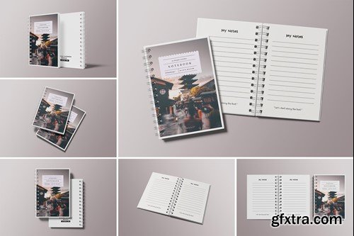 A5 Spiral Notebook Mockup This item consist of 13 different styles of A5 Spiral Notebook mock-ups to showcase your design in realistic appearances. These mock-ups files uses smart object feature which help you change the design just in seconds. Features: Notes: Thank You