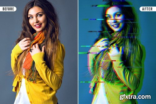Glitch Photo Effect This action is designed to transform your pictures into Caricature Effect. I recommend using the action on photos (1000 px – 3000 px) resolution to get the best results. The filters are so versatile and work with a lot of different pictures like fashion, lifestyle, blogging and even moody product shots. Files Included: Purchase without any hesitations & Enjoy!