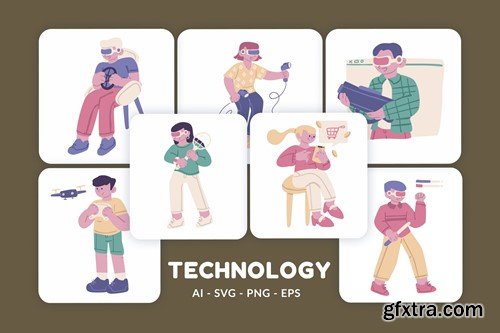 This is 7 Technology Vector Illustration. You can resize & change the color because it is vector.