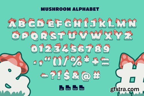 Mushroom Cartoon Alphabet Typography Suitable for Mushroom Typography Alphabet. Font link in the “Readme!.txt” Features File Includes