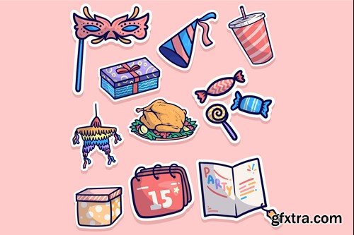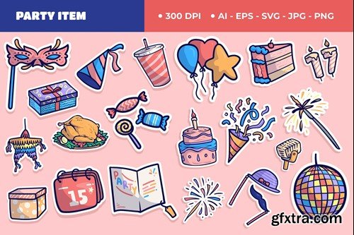 Party Items Cute Sticker Set is a cute sticker set perfect for scrapbooking, paper crafts, card design, stickers, party invitations, and many more. This sticker set is in vector format with 20 illustrations ready to make your design looks cute and lovely. Zip File Includes:: Hopes you like it!
