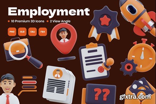 Employment 3D Icon This 3D Icon are perfect for UI design, web design, presentation slides, landing pages, header images, and even for print purposes. Highlight Files Included: