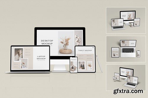 Multi Device Mockup Show off your multi device layout on this gorgeously stylish stock mockup. This is Photoshop file, layered, and smart object feature to help you insert the design inside just a second. Features & files included: Notes: Images used in this preview is not included